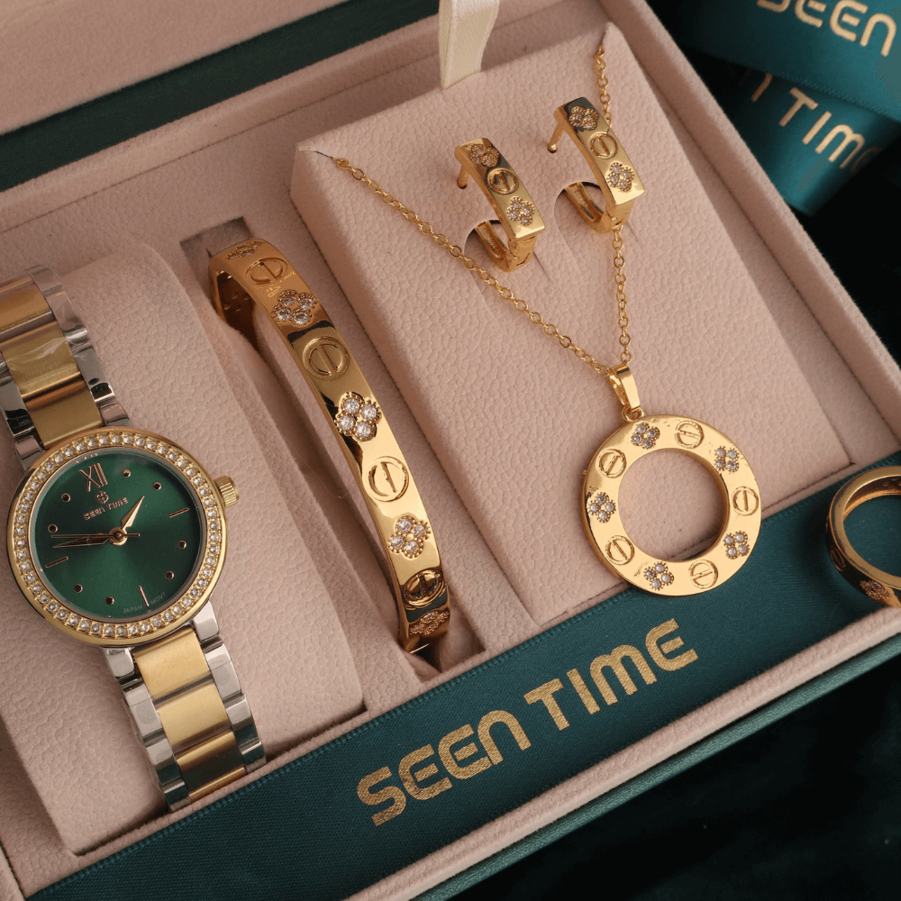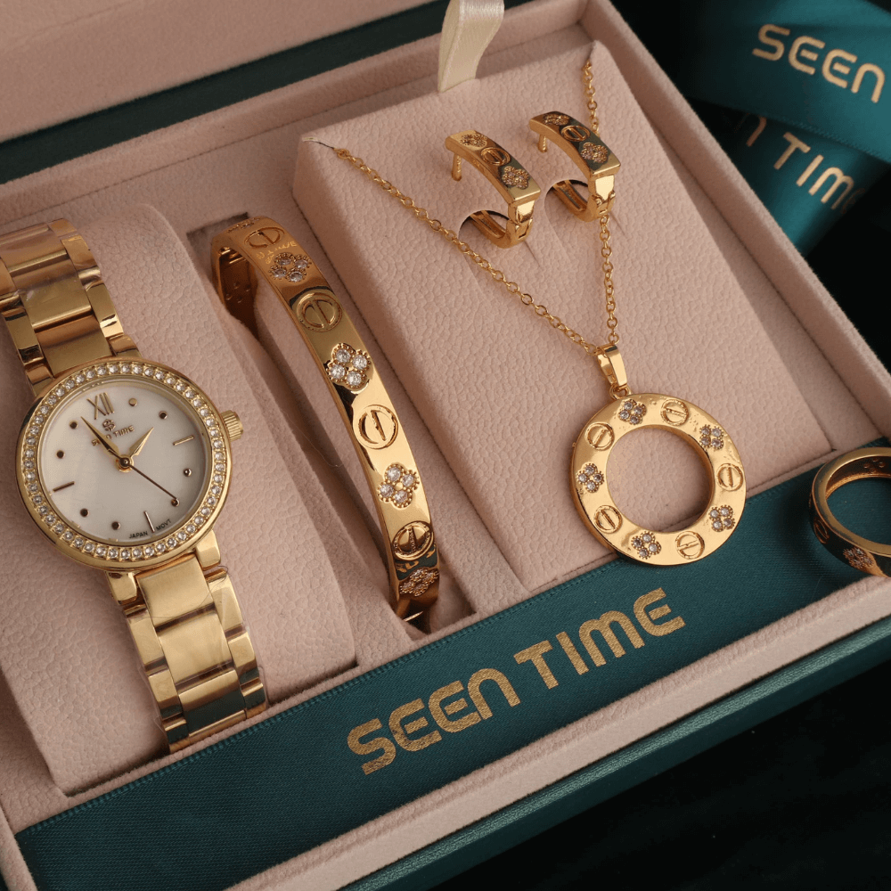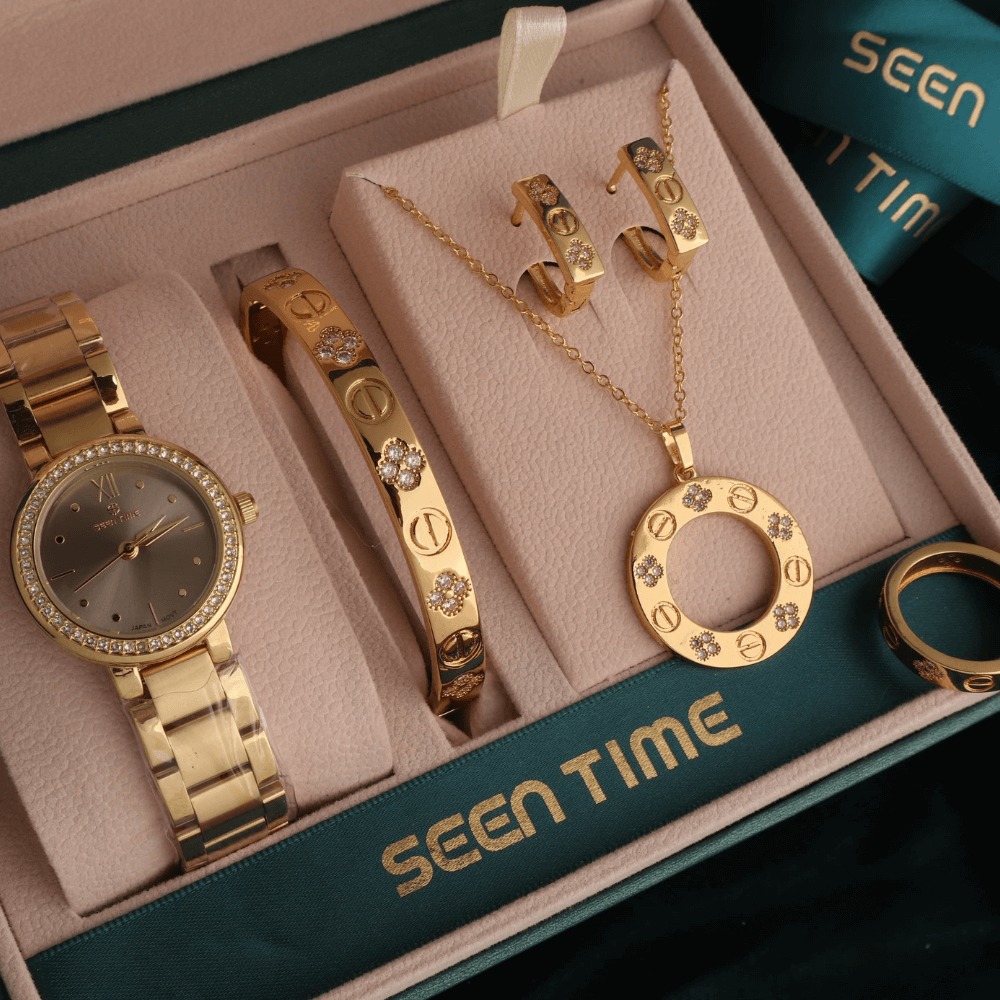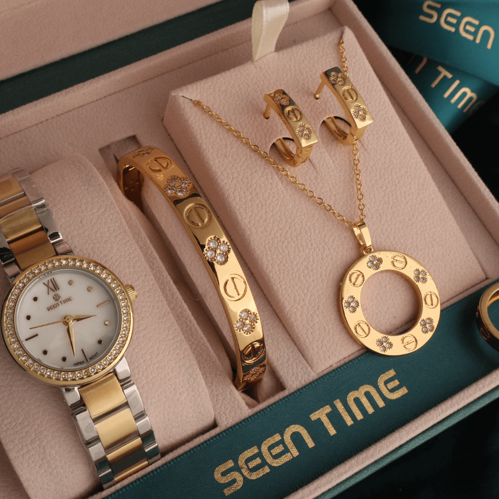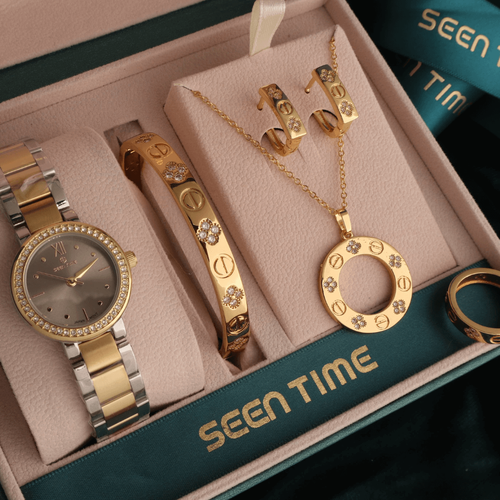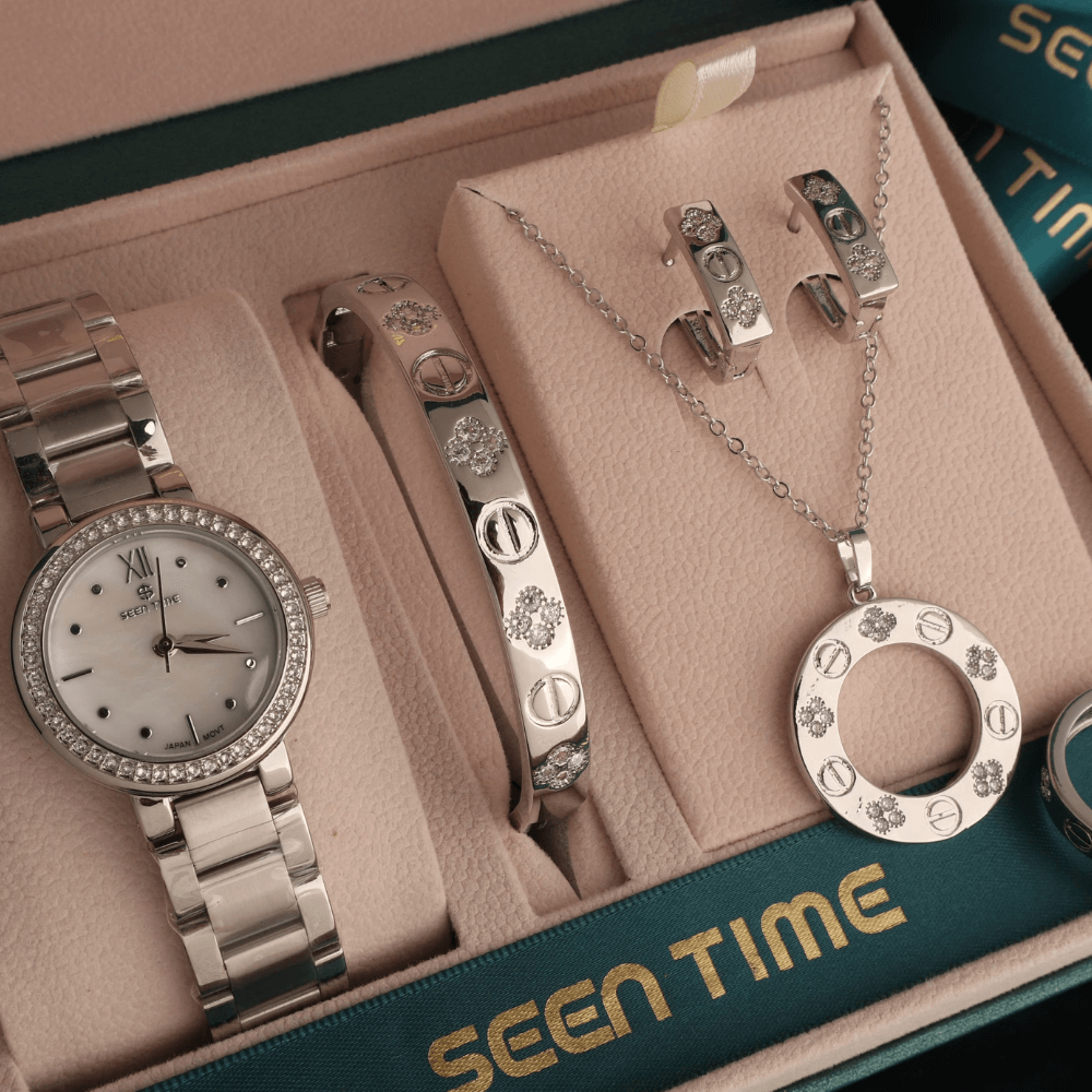 ساعه نسائية استيل من ماركة ( SEEN TIME ) موديل ماركة شاروتي بفصوص .
